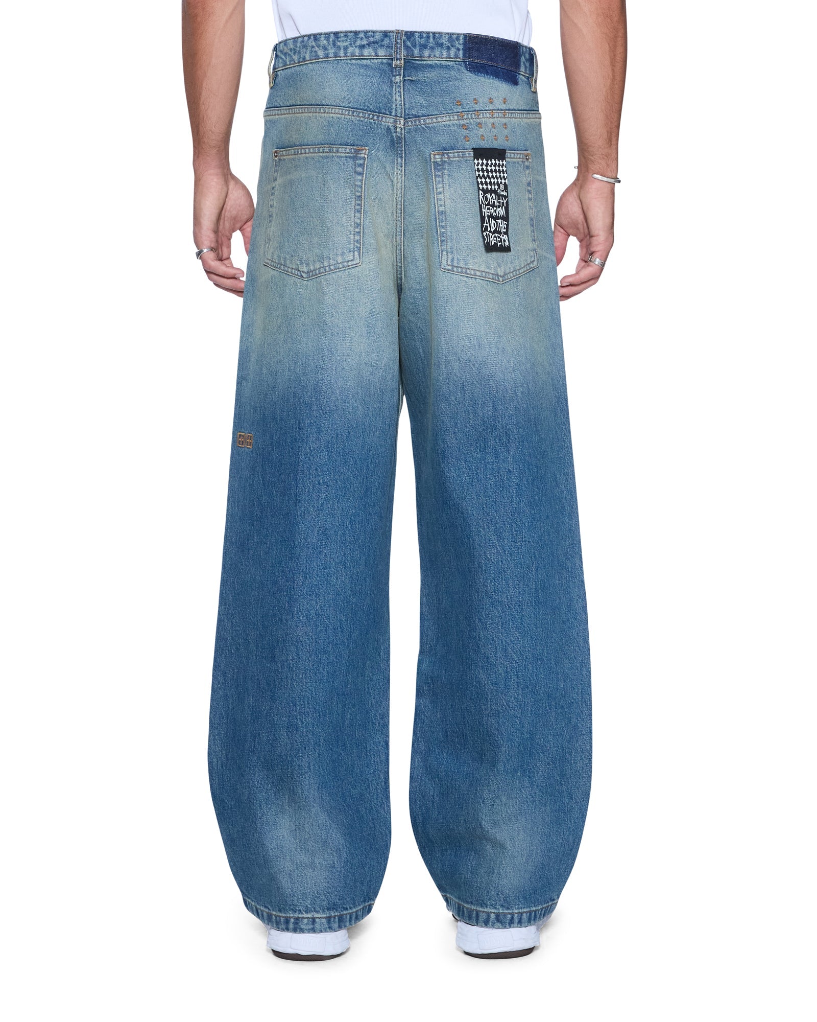The Maxx Portland Blue is an exaggerated straight-leg jean with a long rise, designed in a mid-blue denim wash. Made from rigid denim with subtle stonewash and vintage worn-in wear patterns, it features classic five-pocket styling, ghost patching detailing and is finished with signature t-box and 4x4 embroidery and Ksubi branded hardware.