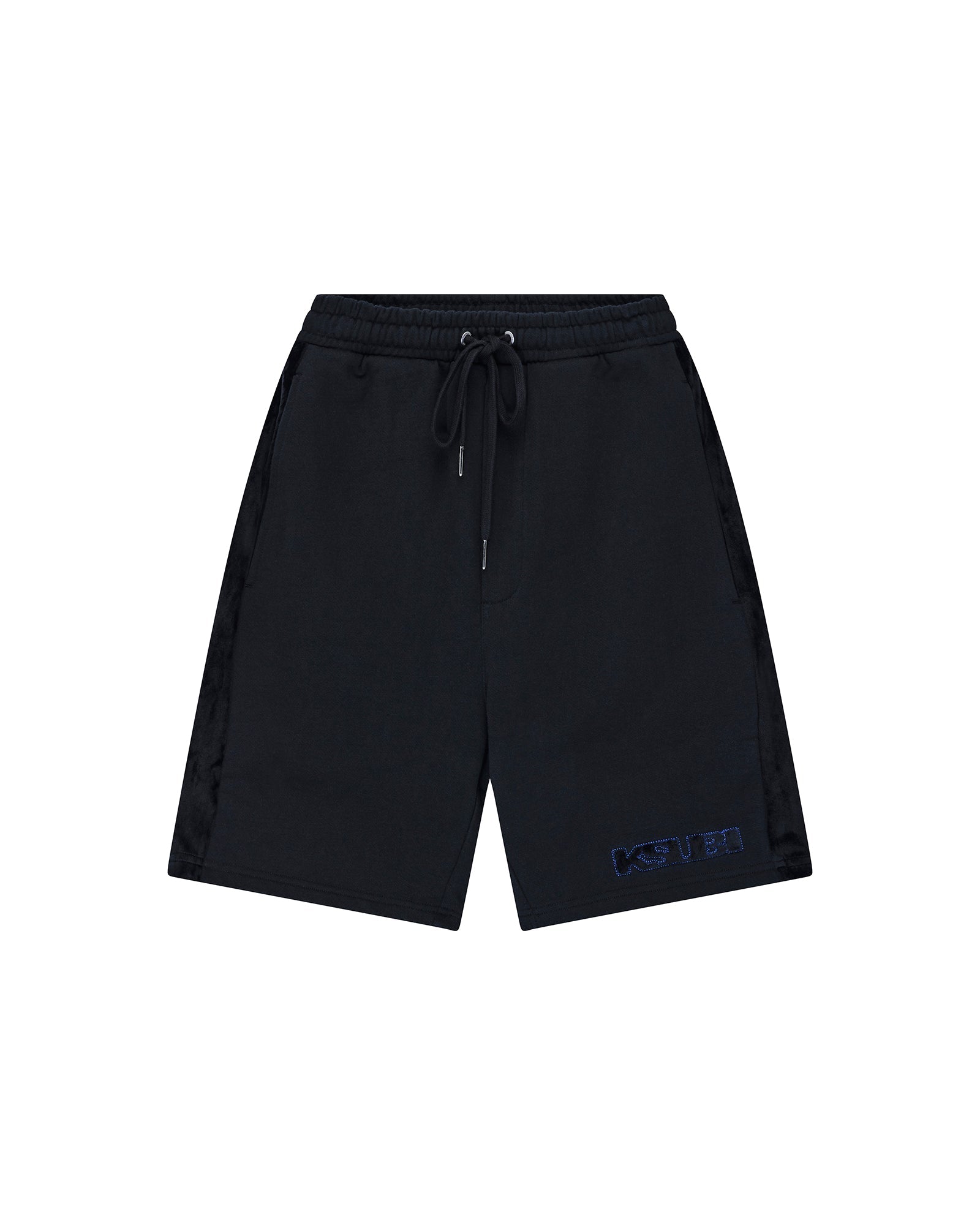 The 4X4 Luxe Synthesis Trak Short Black is a relaxed fit short finishing at knee length, with in-seam pockets and back patch pockets. Cut from heavyweight loopback cotton fleece in jet black, it features flocked side seam panels with cobalt blue saddle stitching, a Sign of the Times applique logo, and is finished with signature T-box and 4x4 embroidery branding.