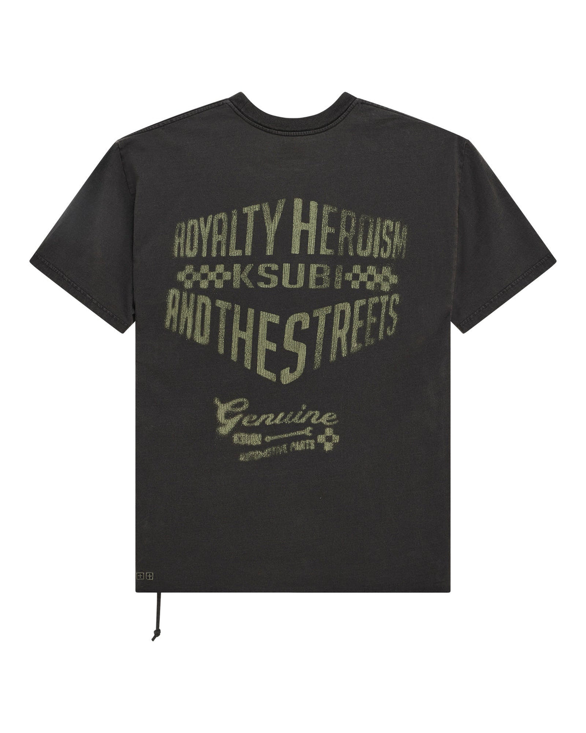The Garage Biggie Ss Tee Faded Black is an oversized fit short sleeve t-shirt with a raw-cut back hem, reverse overlocked side seam, and signature rats tail. Made from premium cotton jersey garment dyed Faded Black, it features seasonal flocked art at the front crest and on the back, finished with signature T-box and 4x4 branding.