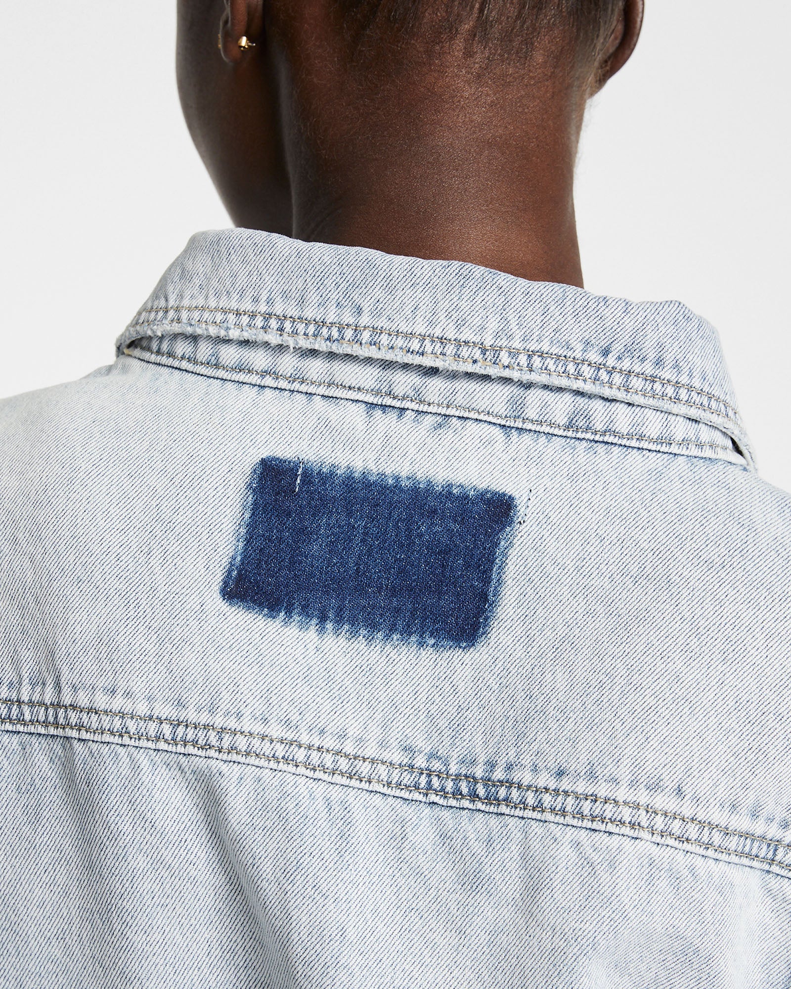 The Oversized Jacket Krystal is made from a premium rigid denim in light blue with a vintage wash. This classic hip length denim comes with rhinestone adhesive print and features signature Ksubi branding. This trucker is versatile and can be paired with the 'Playback Krystal.'
