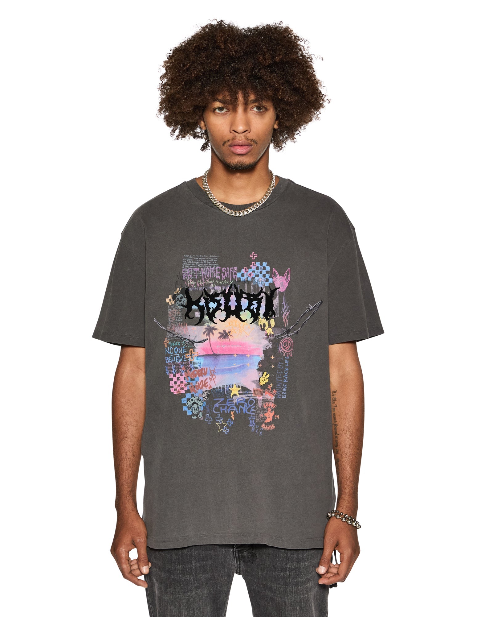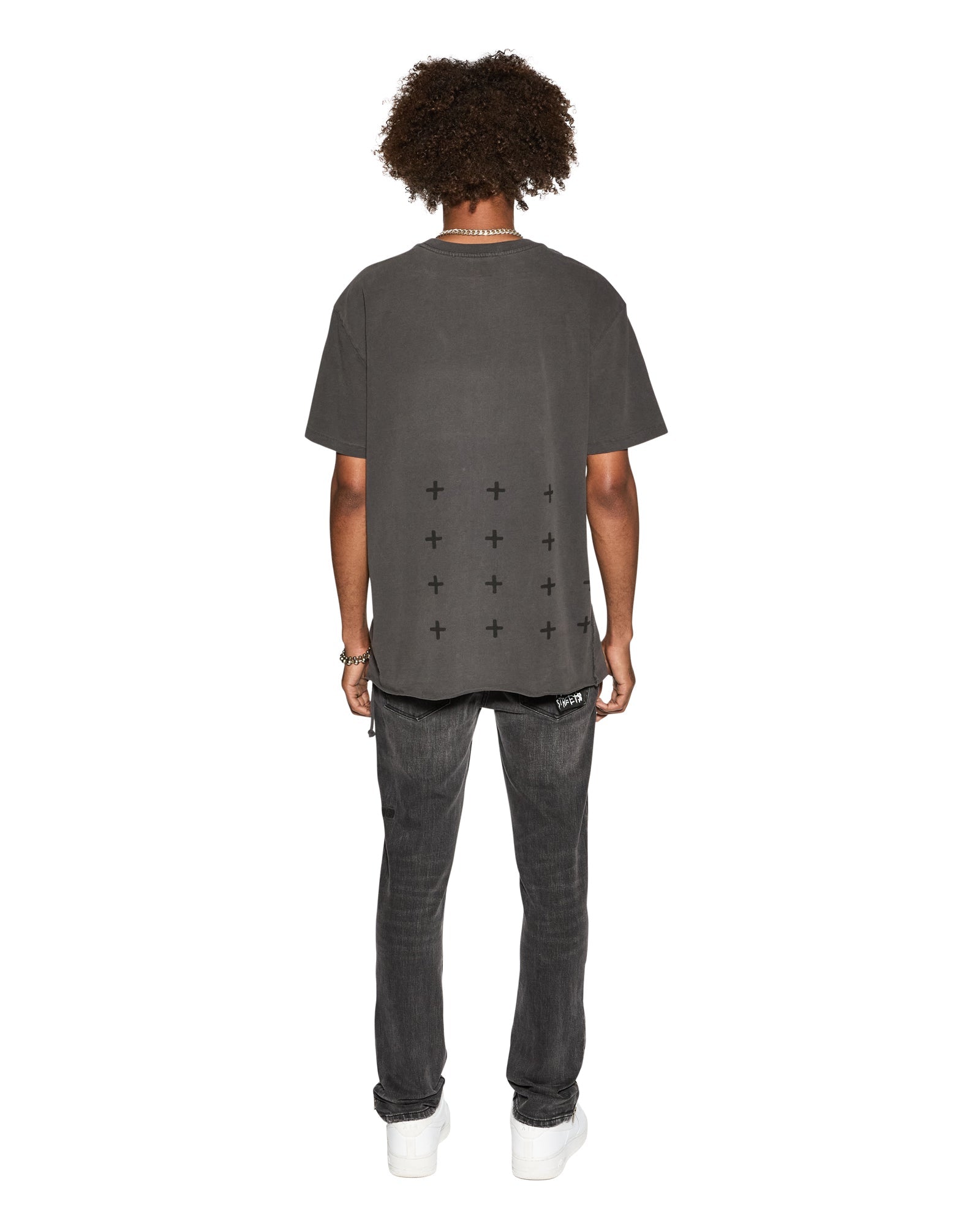 The Vandals Biggie Ss Tee Faded Black is an oversized short sleeve t-shirt made from a premium cotton blend in a faded black. This style features a raw cut back hem, Ksubi dollar sign embroidery and signature T-box branding.